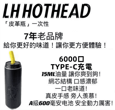 LH HOTHEAD皮革瓶一次性拋棄式電子煙可充電6000口